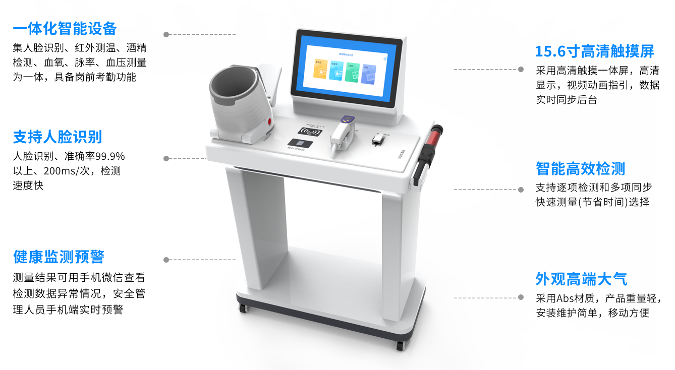 · 智能一体设备,集岗前检测、考勤和即时预警功能