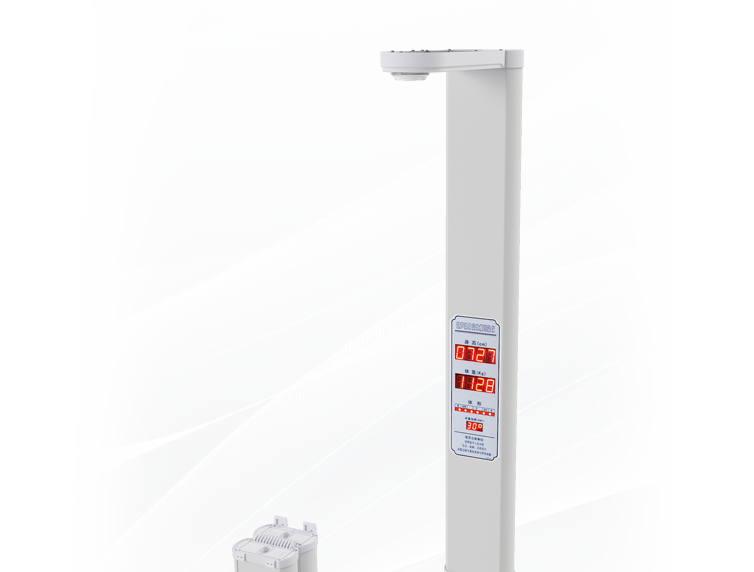 身高体重测量仪采用超声波测量技术,便携精准,数码管显示,语音播报,可移动、可折叠,多功能一体化测量。
